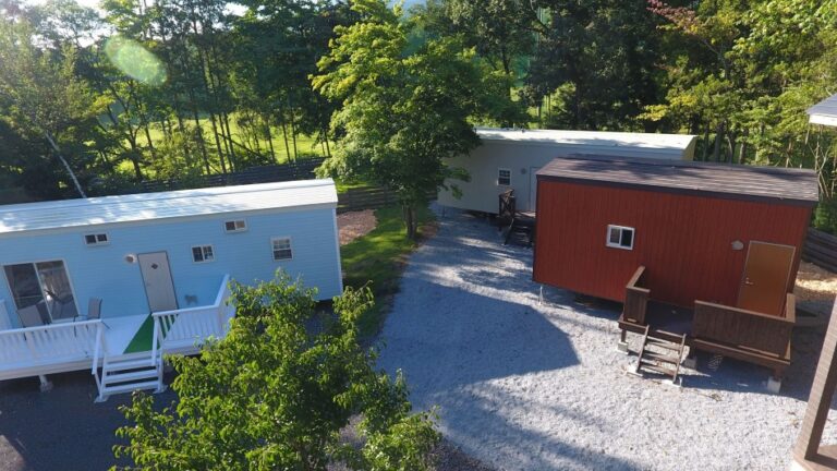 客室は独立したトレーラーハウス型で、周囲の自然を感じながら静かに過ごせます。